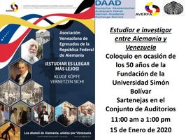 Esta actividad está dirigida a toda la comunidad universitaria, egresados y amigos, y estará a cargo de representantes de la Asociación Venezolana de Egresados de la República Federal de Alemania, Averfa, que agrupa a los ex-becarios venezolanos del Servicio de Cooperación e Intercambio Académico de Alemania, Daad, quienes además son voceros de ese Servicio en Venezuela.
